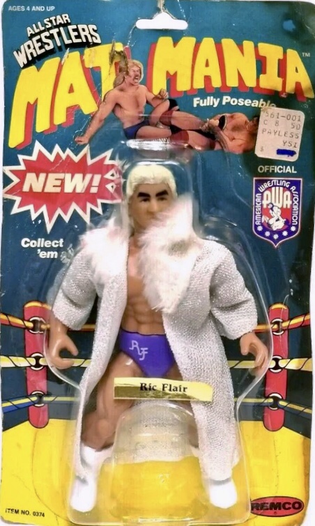 The fifth wave of AWA All-Star Wrestling figures was billed as the “Mat Mania figures. The series was the only wave by Remco to feature individually released figures. There were 11 figures in total, with 3 of them, Nick Bockwinkel, Ric Flair, and Paul Ellering, being re-issues from previous waves. This would be the last wave of figures released by Remco.