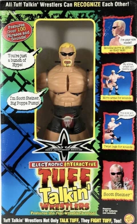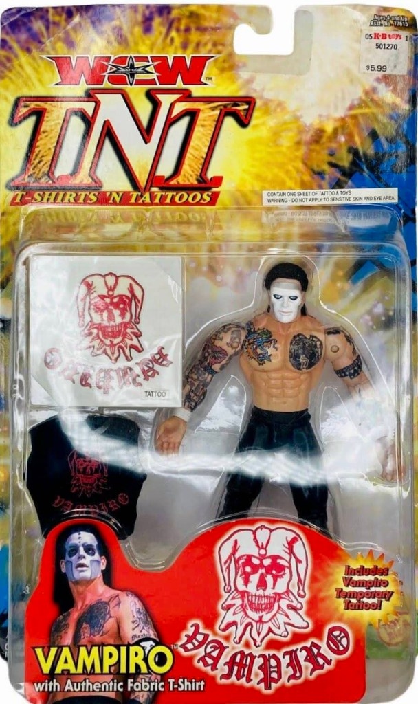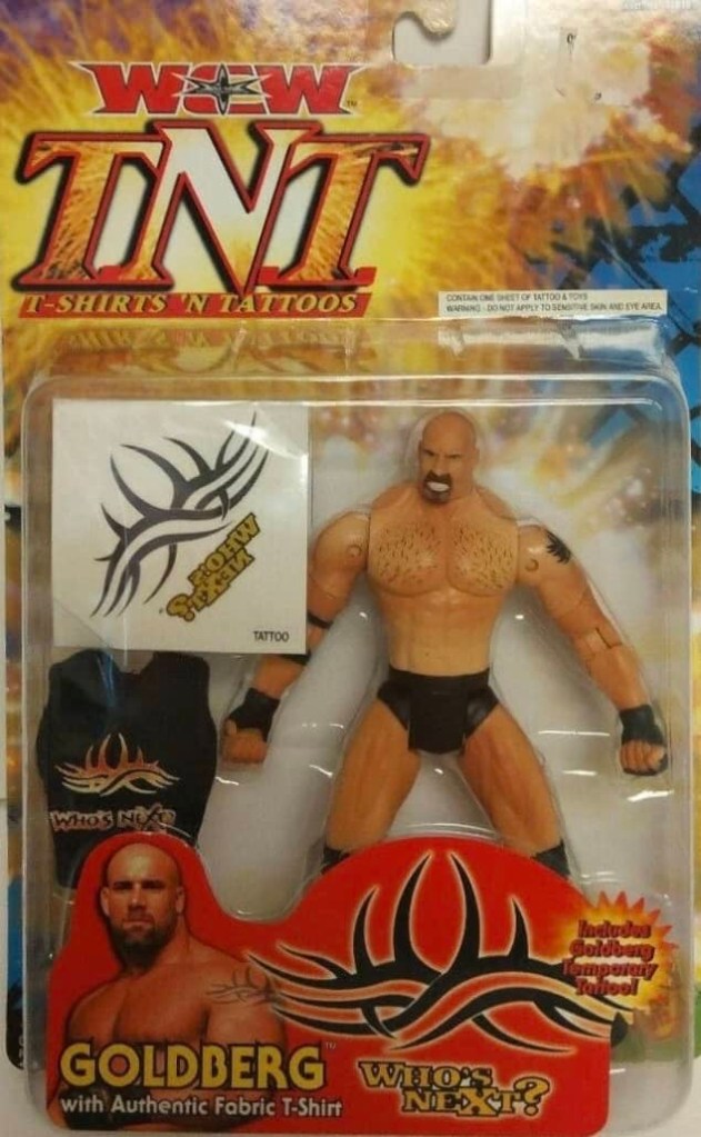 The WCW TNT series featured Goldberg, Jeff Jarrett, Scott Steiner and Vampiro with the TNT theme. Each figure included a wrestler themed tattoo.