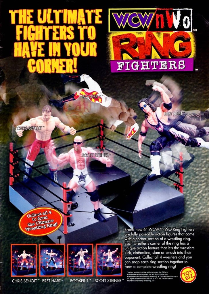 The Ring Fighters featured the biggest names of the WCW with a corner of a wrestling ring. Get any four figures to make a complete ring. The figures also were released on a “small card” that did not include the wrestling ring pieces.