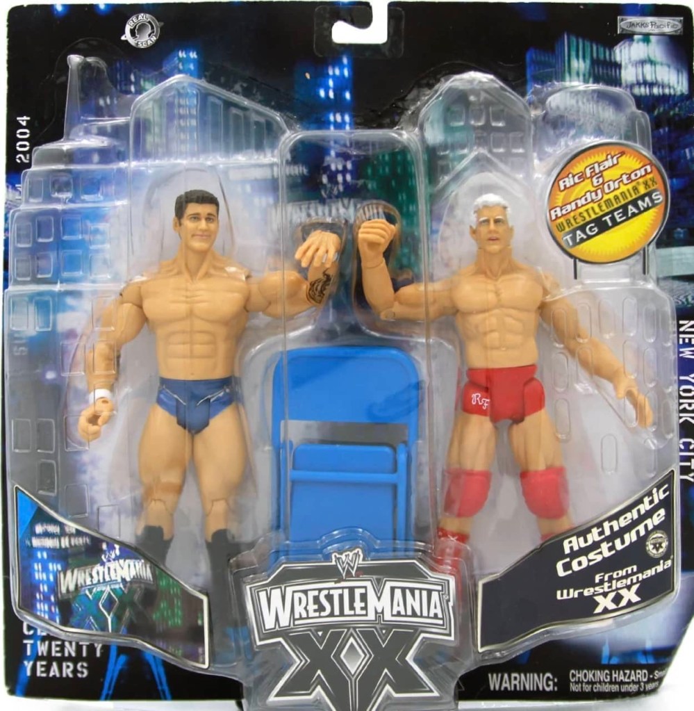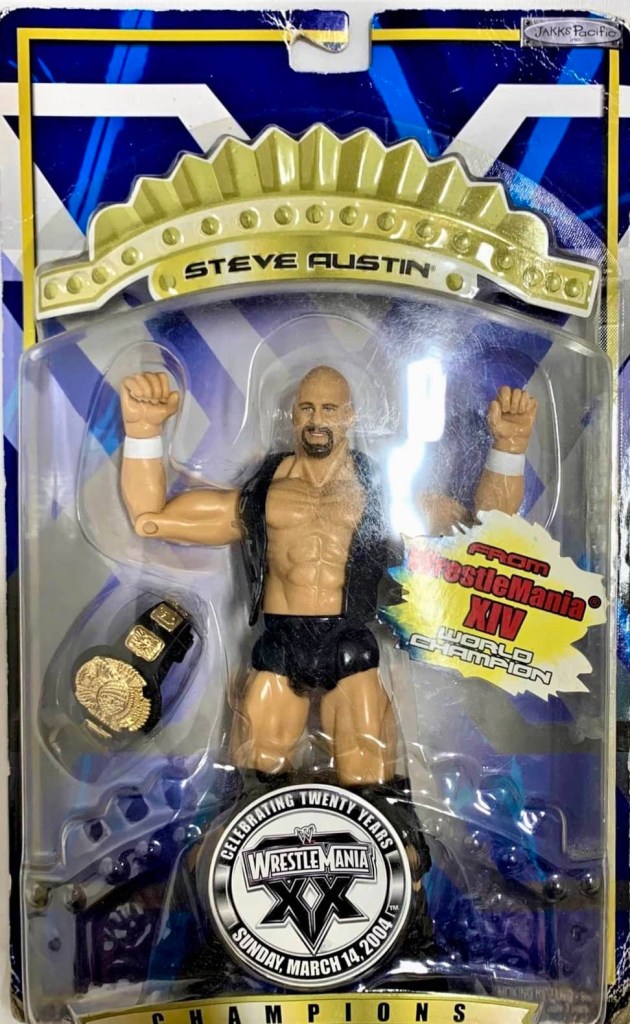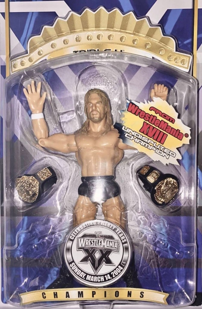 The WrestleMania XX Champions series debuted in 2004 to commemorate the winners from the previous WrestleMania XX. This series featured six individual figures, as well as four different 2-packs as well, released under the WrestleMania Recall brand.