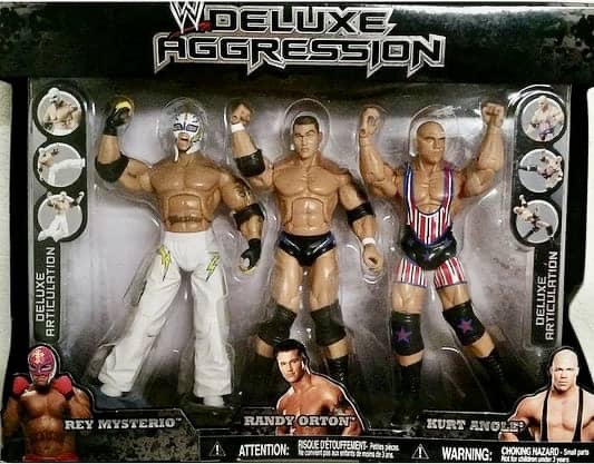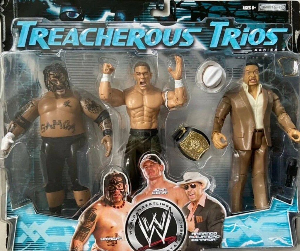The Treacherous Trio series continued in 2007, and featured three-packs of the biggest wrestlers in the WWE. Most figures in this series were just re-packs from previously released sets.