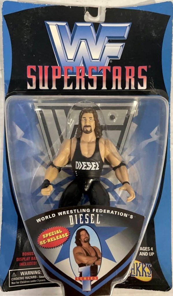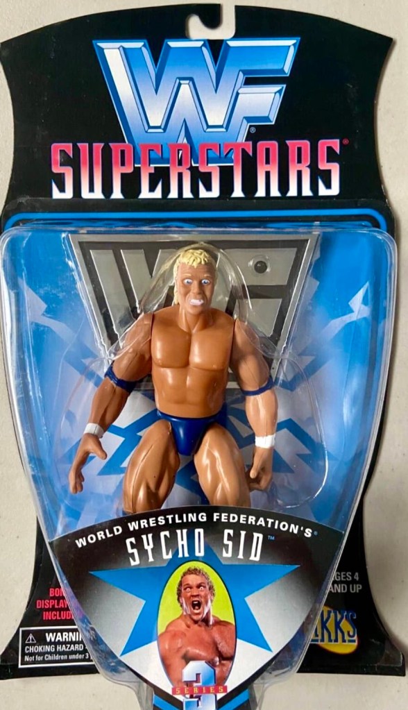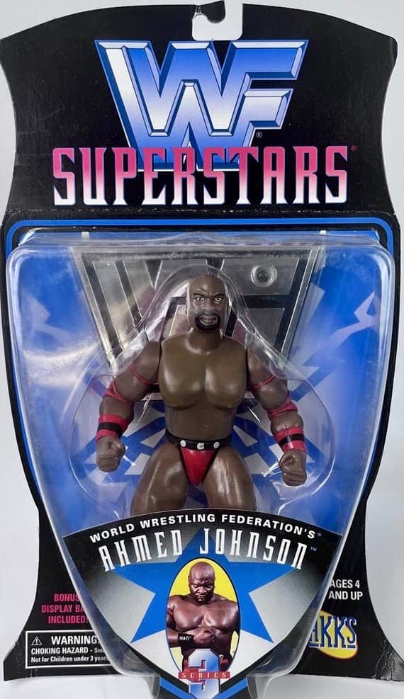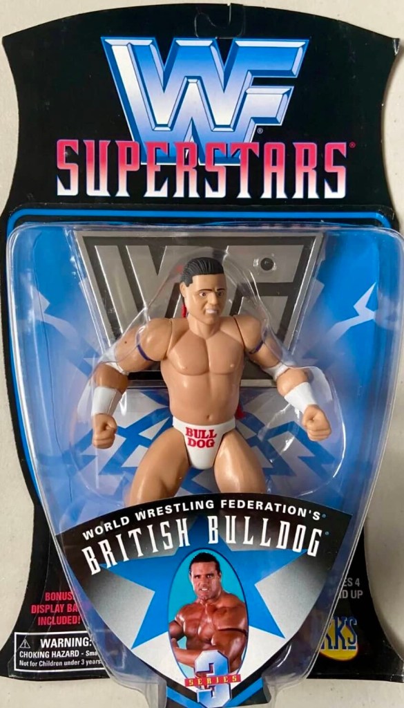 Jakks Pacific continued their very popular WWF Superstars series in 1997 with Series Three. The series contained four re-releases (Bret Hart, Diesel, Goldust and Shawn Michaels) with four brand new characters, Ahmed Johnson, British Bulldog, Mankind and Sycho Sid. Note: These figures were released on die-cut cards, as well as full cards with the values being similar.