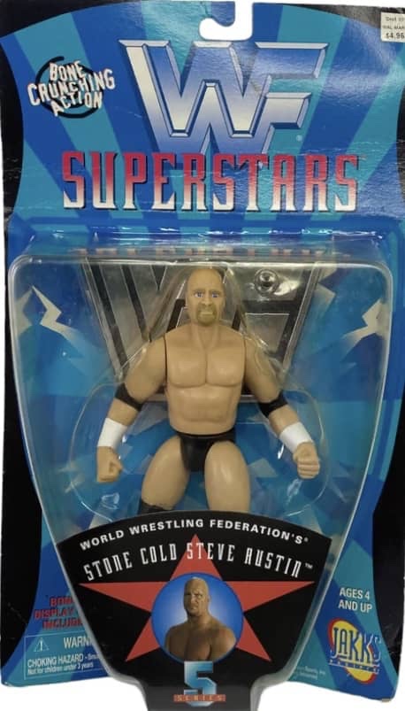 Series Five of the WWF Superstars series contained six brand new figures, Flash Funk, Ken Shamrock, Rocky Maivia, Savio Vega, Stone Cold Steve Austin and Sycho Sid.