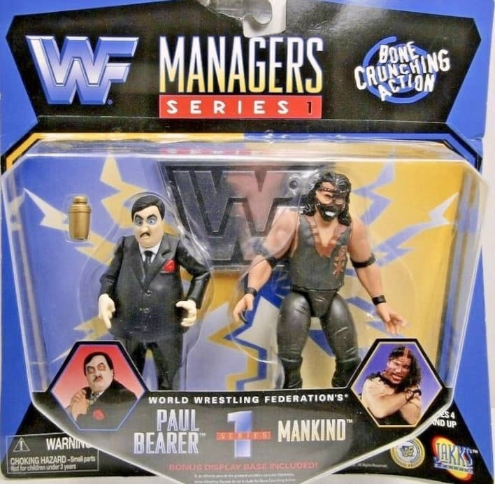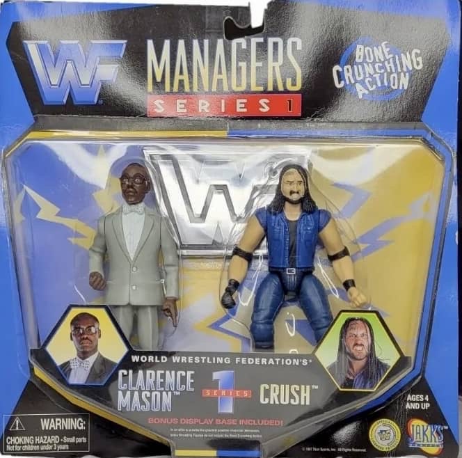 The Manager Series contained four different two-packs featuring famous WWF wrestler/manager combos. Featured were first time figures of Bob Backlund, Sultan, Clarence Mason, Crush, Paul Bearer and Marc Mero.