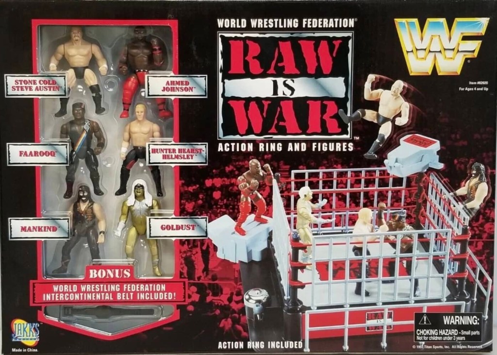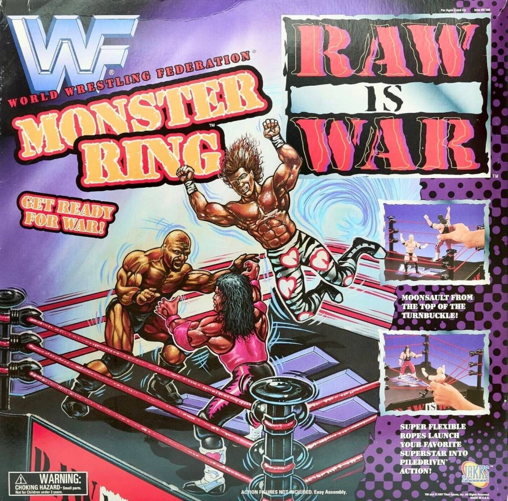 Jakks Pacific released several different versions of their Wrestling Ring playsets from the WWF action figure line. In 1997, there were three versions of their Raw is War Monster Ring Playset, as well as a new version of the original Monster Ring from the year before. In addition, we got three brand new “Mini Slammin’ Action” sets that came with miniature figures and a wrestling ring.
