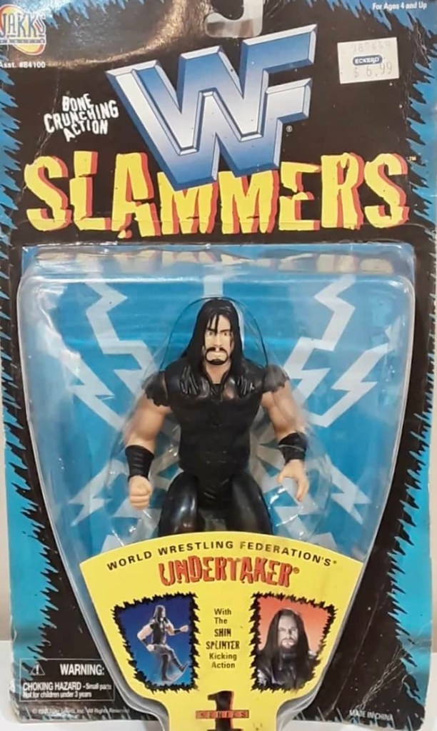 The Slammers series was a new line featuring two waves of our favorite WWF Superstars, such as Bret Hart, Mankind, Faarooq, Goldust, Stone Cold Steve Austin, and the Undertaker. Series 2 featured Brian Pillman, Dude Love, Kane, Patriot, Shawn Michaels, and Taka.
