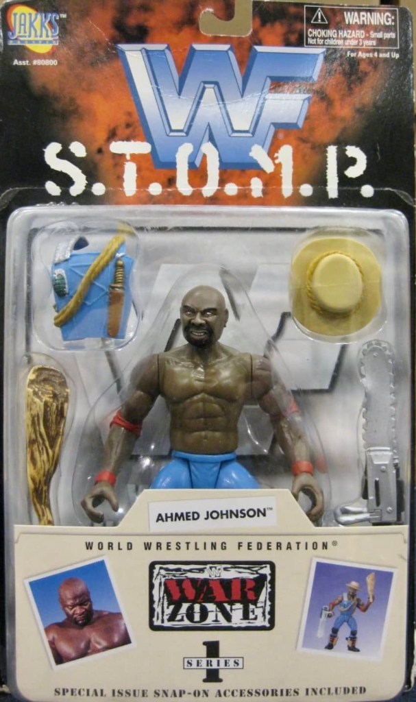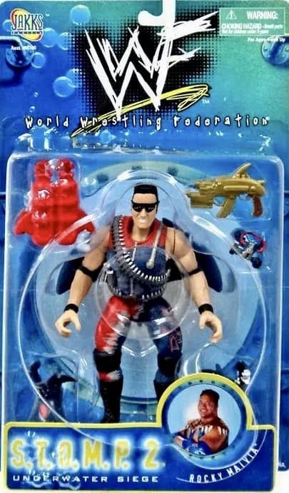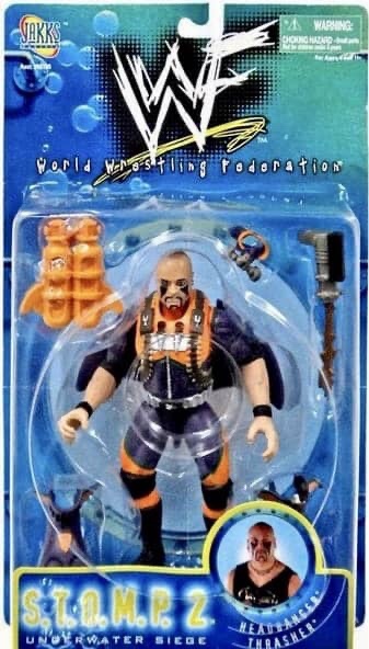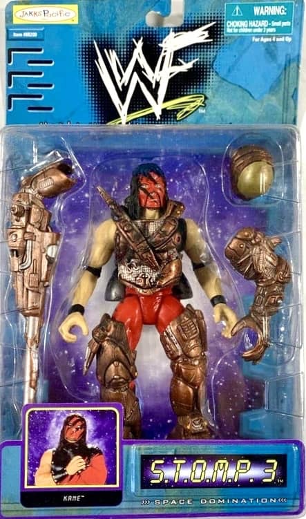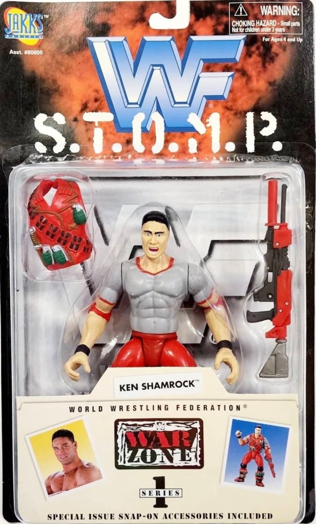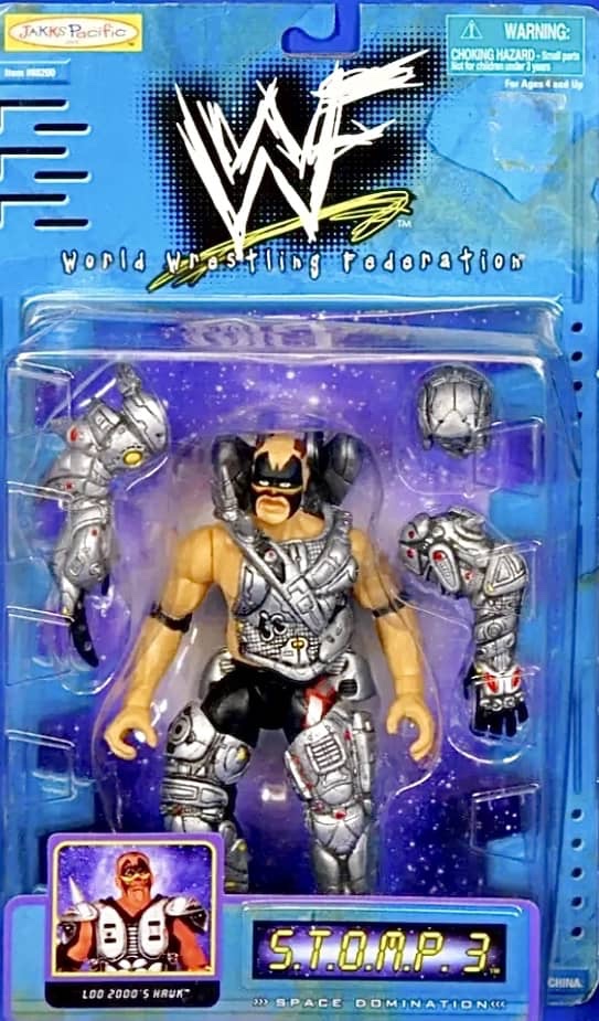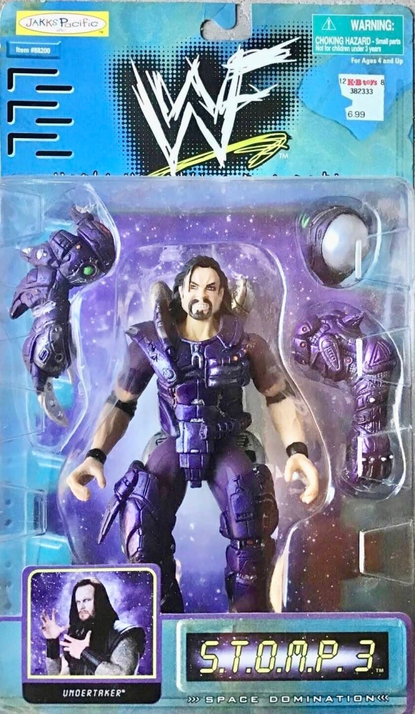 The Stomp series was a new line featuring three waves of our favorite WWF Superstars. Each wave was themed to a particular environment. For example, Series 1 included snap-on accessories with a military theme, while Series 2 had an underwater theme. Series 3 was dedicated to sci-fi type accessories and packaging.