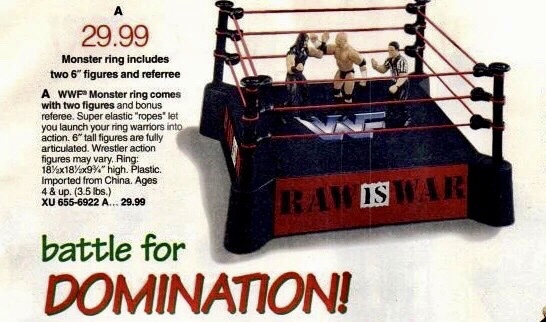 Jakks Pacific released several different versions of Wrestling Ring playsets from their WWF action figure line through the years, but they only released three new wrestling rings in 1998. There were two versions of their Raw is War Monster Ring Playset, as well as a new “Attitude” Wrestling Ring. In addition, we got two new “Mini Slammin’ Action” sets that came with multiple miniature figures and a wrestling ring playset.