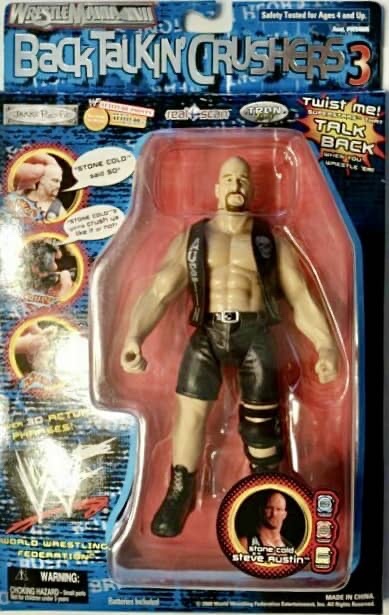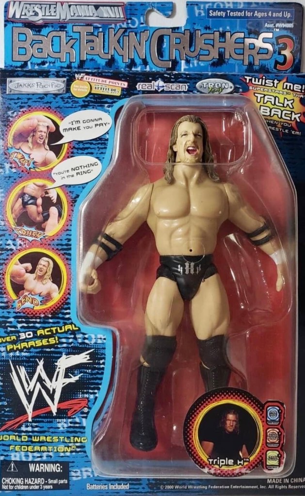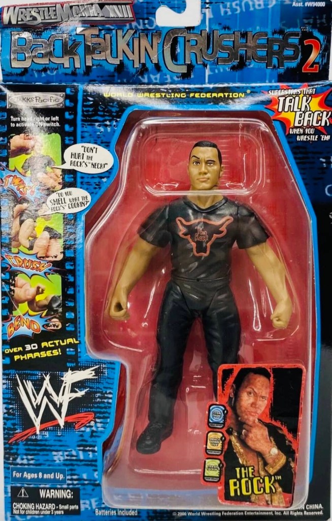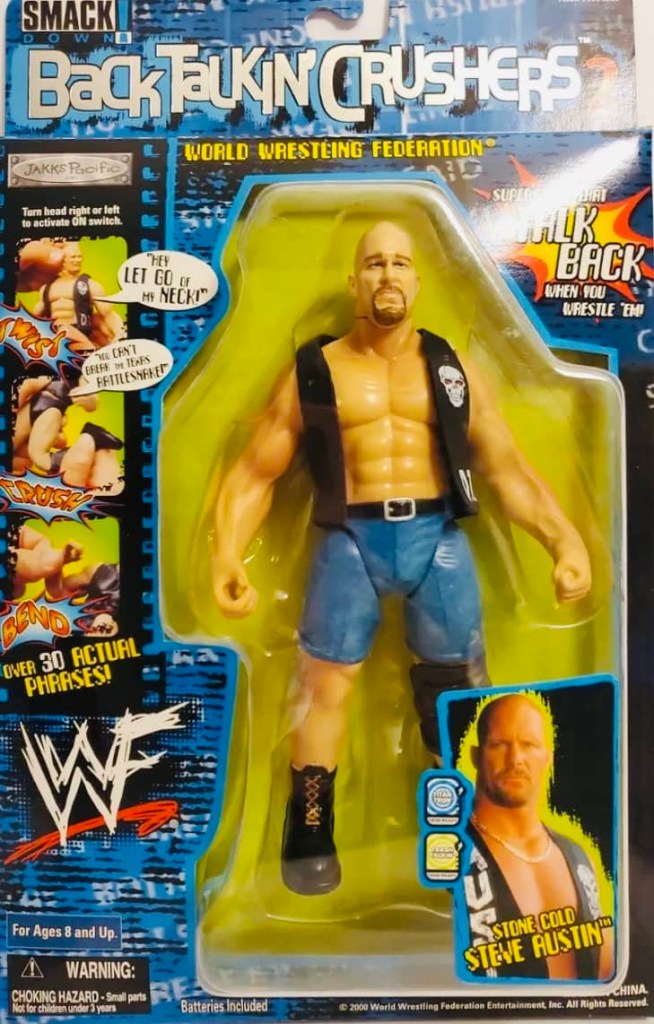 The Back Talkin’ Crushers talking figures continued in 2000 with two waves containing nine new figures. Included were: Mankind, Road Dogg, Chris Jericho, Triple H, Kurt Angle, Stone Cold Steve Austin and The Rock.