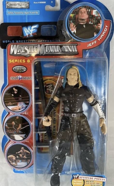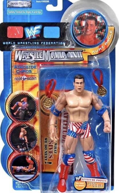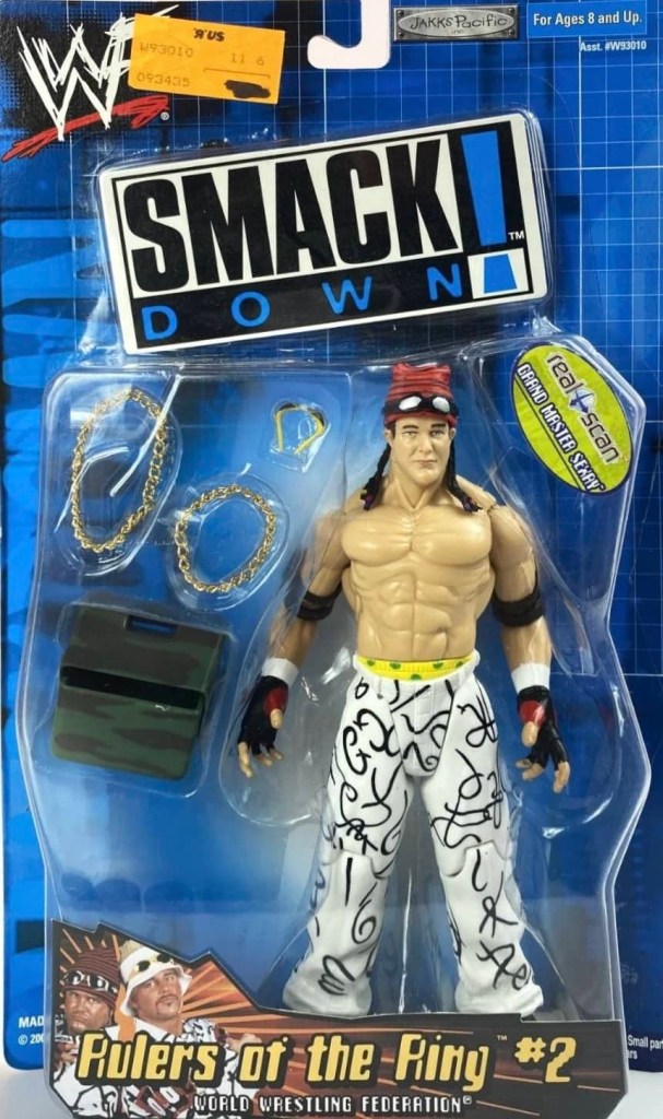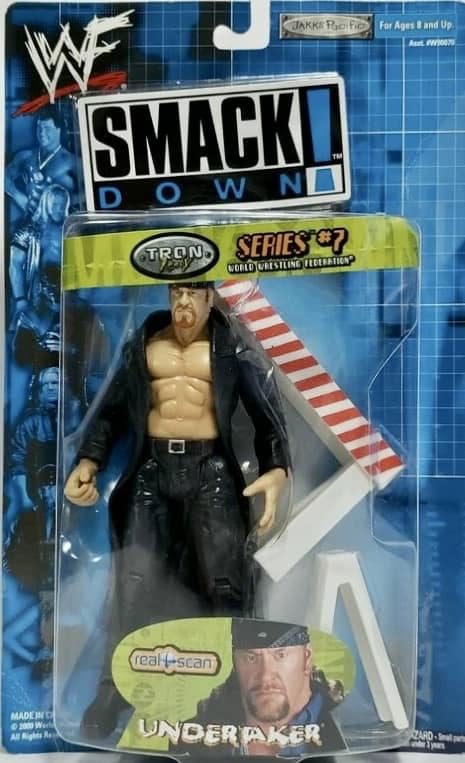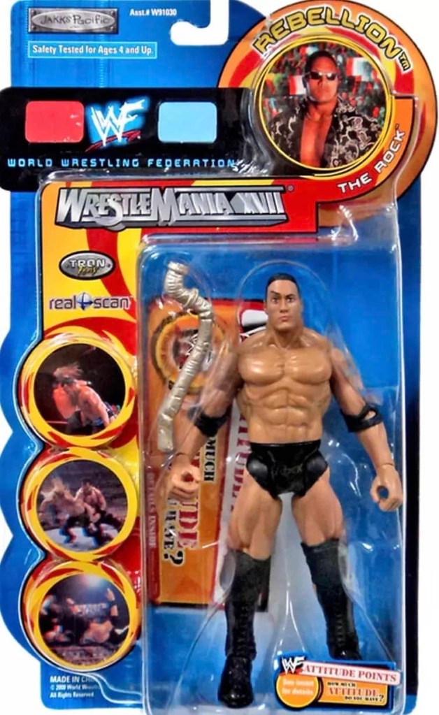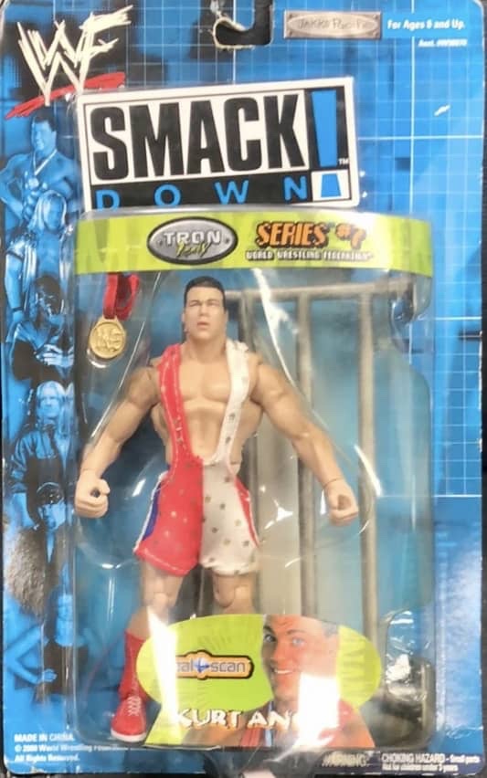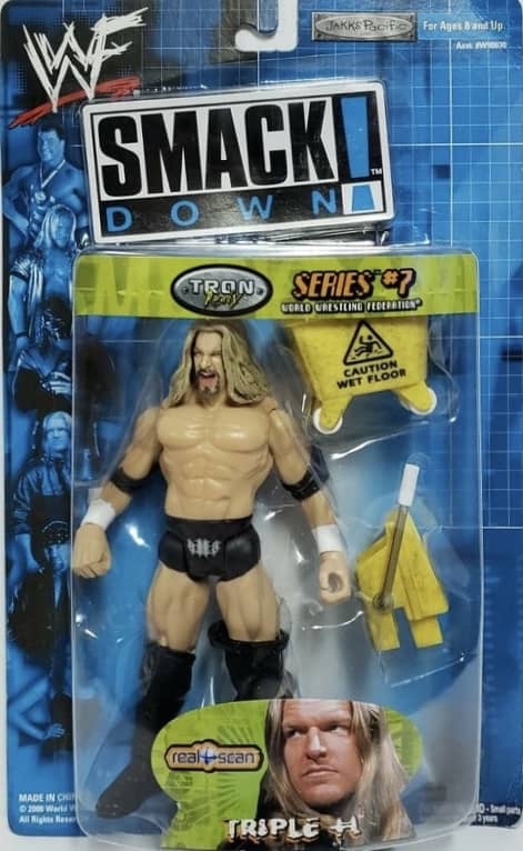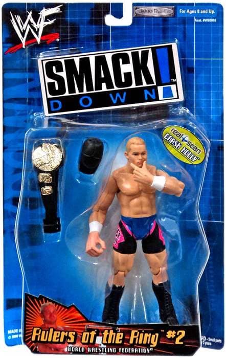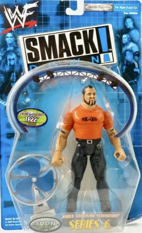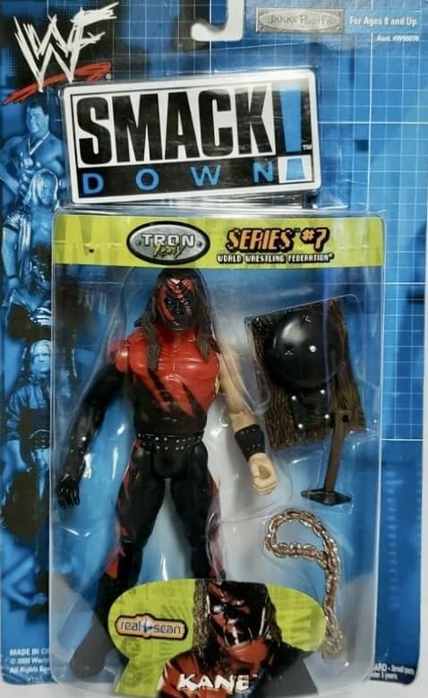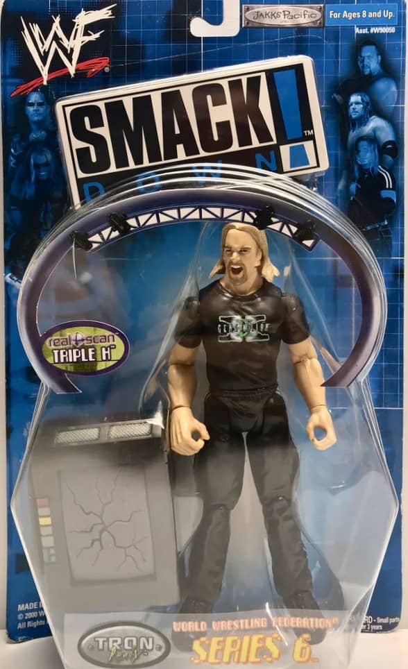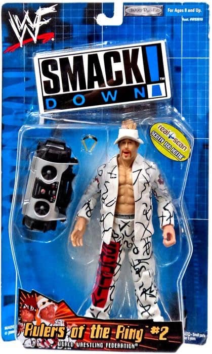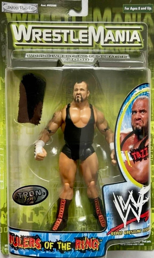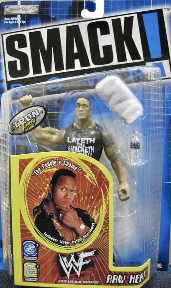 The fifth wave of wrestling action figures from Jakks Pacific in 2000 continued their massive success. Their successful launch of the TitanTron Live series from the year prior continued with EIGHT more waves! Also returning were the Back Talkin’ Crushers, Federation Fighters and Raw Heat lines. Many new series were also released, such as; Backlash, Double Slam, House of Pain, No Way Out, Rebellion, Ringside Chaos, Rulers of the Ring and Smackdown. As usual, several new multipacks and ring playsets also followed.