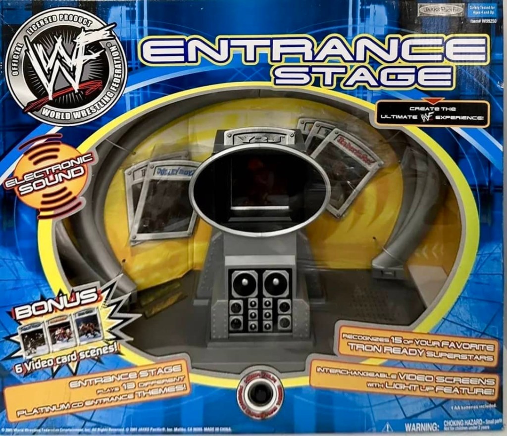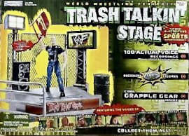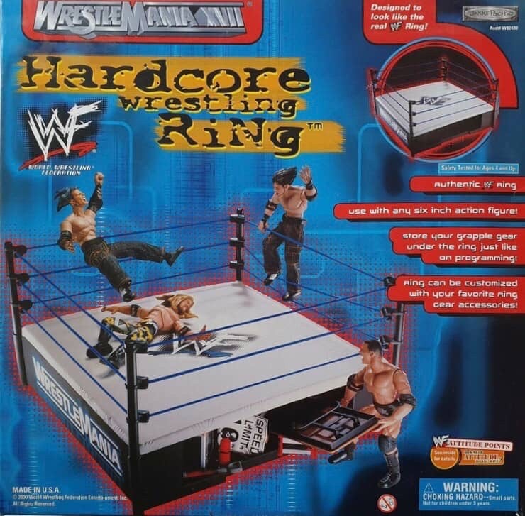 Jakks Pacific released several different versions of various Wrestling Ring playsets from their WWF action figure line through the years, and 2000 was no different. There was a new Smack Down Stage Playset, as well as a Smack Down Backstage Mayhem Playset. In addition, we got three other playsets with the Trash Talkin’ Stage, WrestleMania XVII Chaos in the Cell Playset and the Hardcore Wrestling Ring.