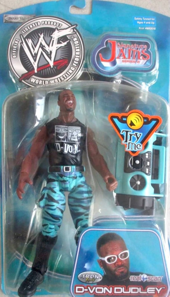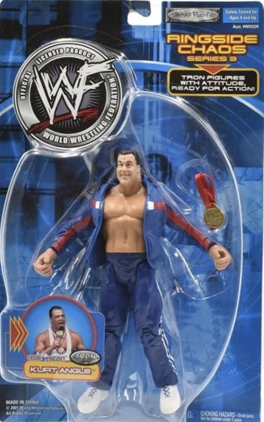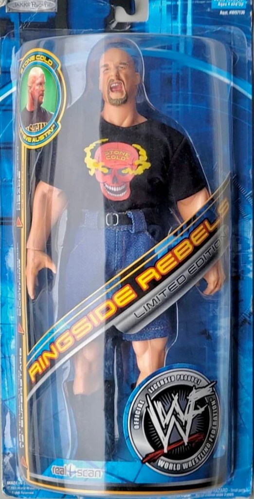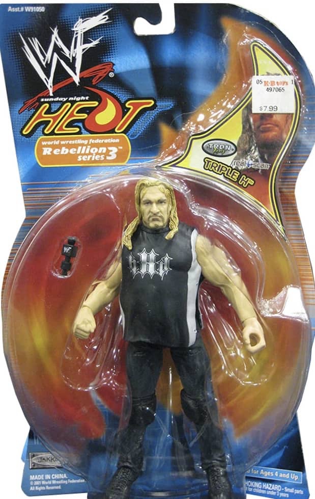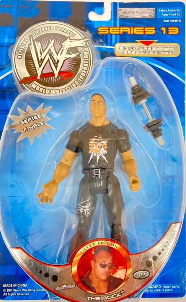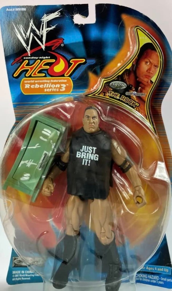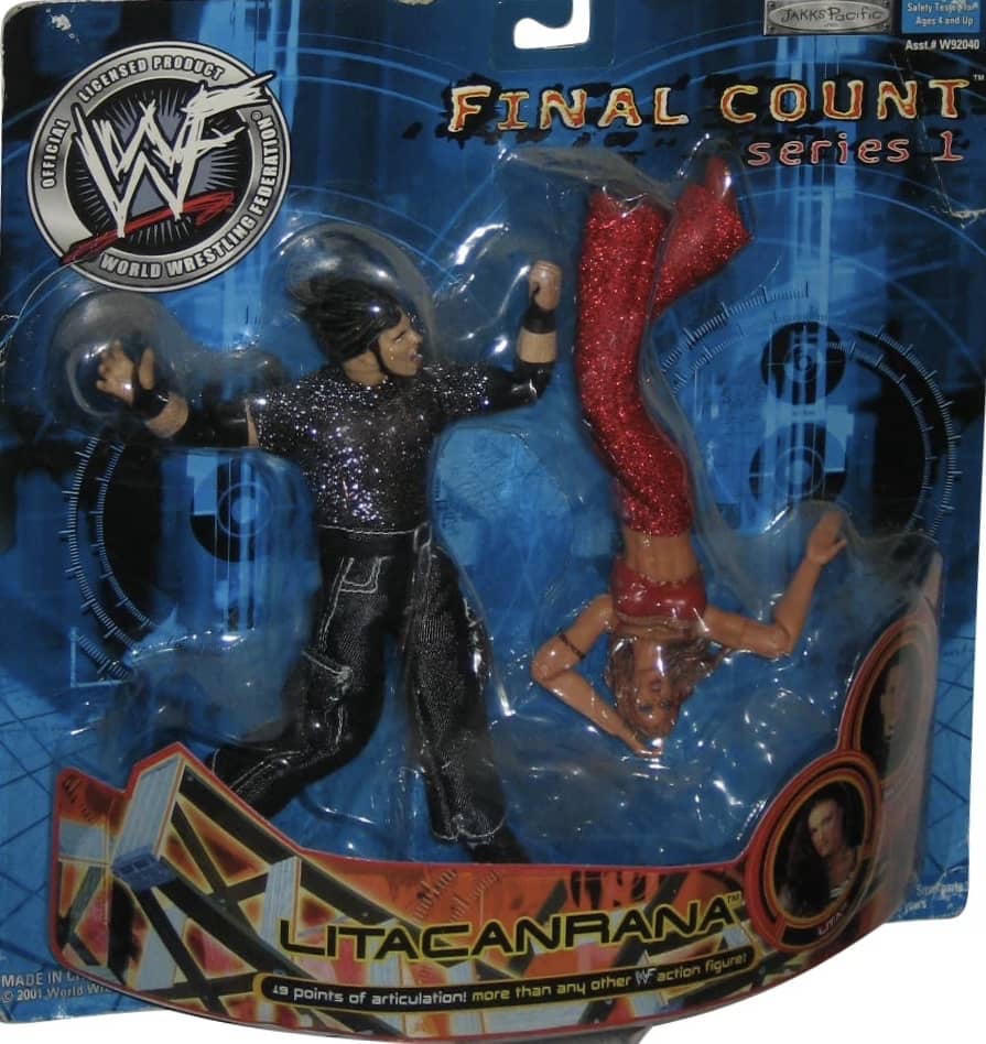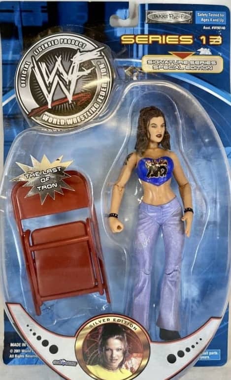 The sixth wave of wrestling action figures from Jakks Pacific in 2001 continued their massive success of previous five years. Their successful TitanTron Live series continued with two more waves. Also returning were the Backlash, Famous Scenes, Finishing Moves, No Way Out, Rebellion, Ringside Chaos, and Rulers of the Ring lines. Many new series were also released, such as; Back Talkin’ Slammers, Bone Crushing Sound Superstars, Fatal Four Way, Final Count, Ringside Rebels, Signature Jams, Stunt Action Superstars, Summer Slam Series, and WrestleMania X-Seven. As usual, several new multipacks, Accessories and playsets also followed.