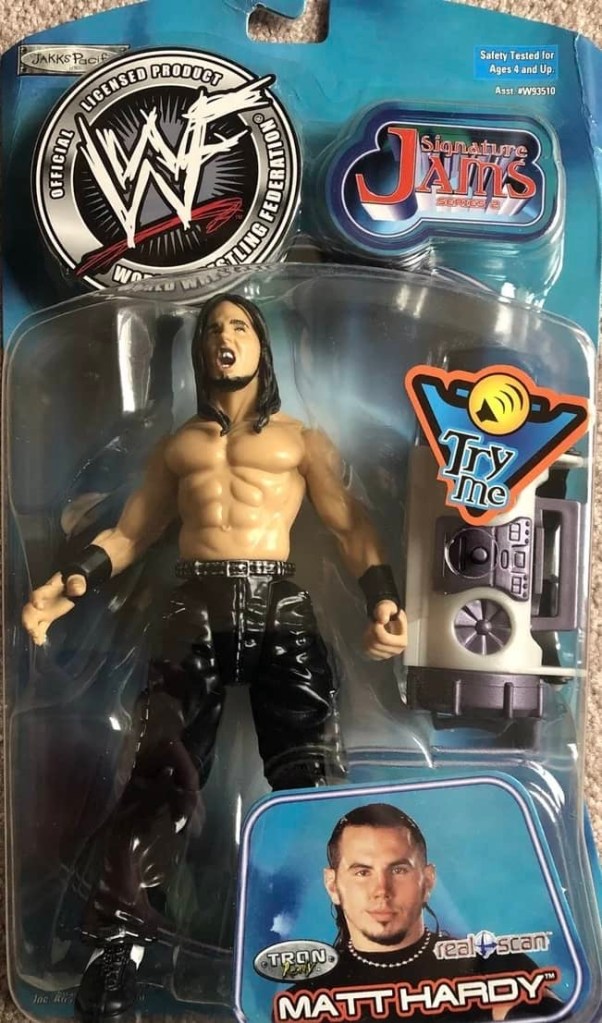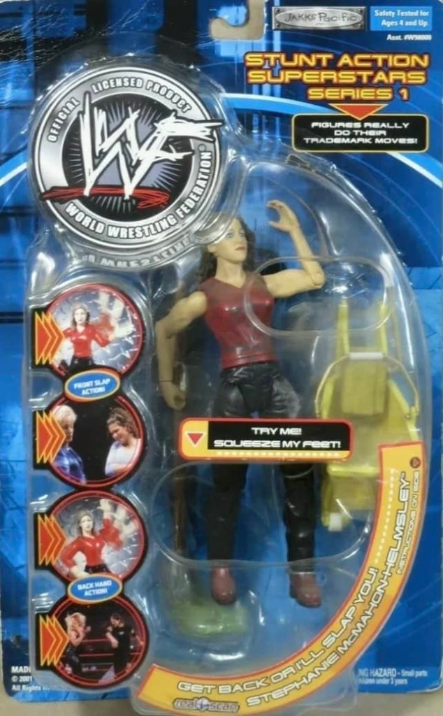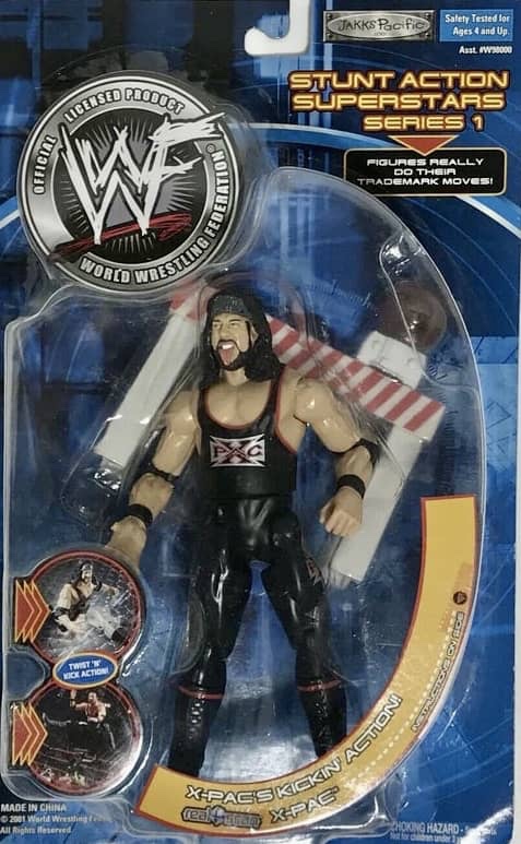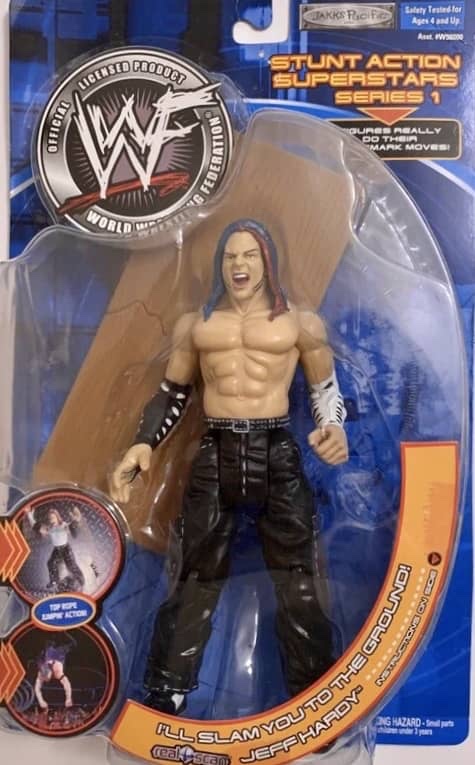 The Stunt Action Superstars series began in 2001 with six new figures depicting Jeff Hardy, Kurt Angle, Rikishi, Stephani McMahon, Triple H and X-Pac. Each figure had their own unique action feature.