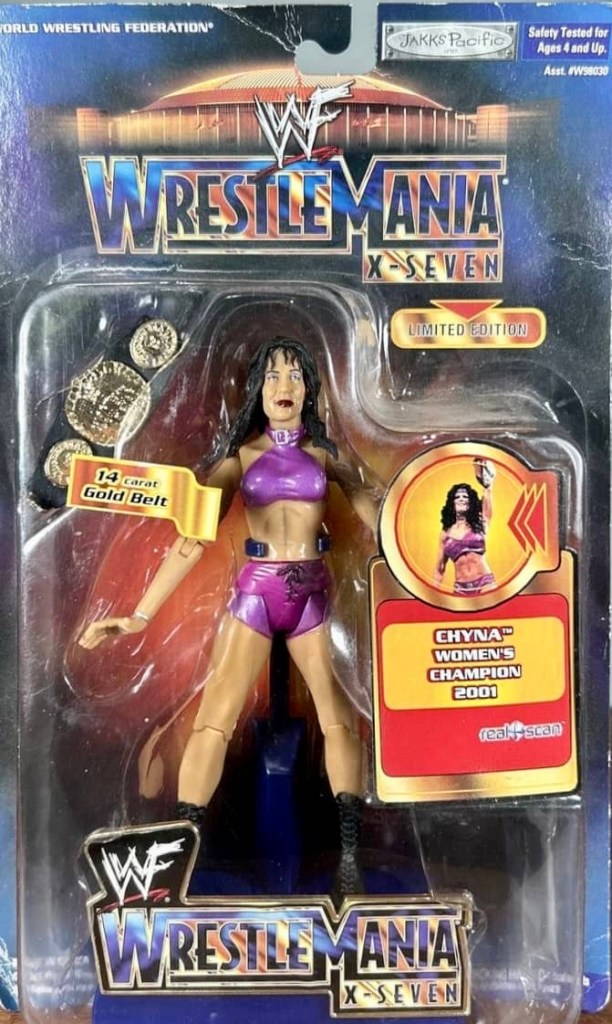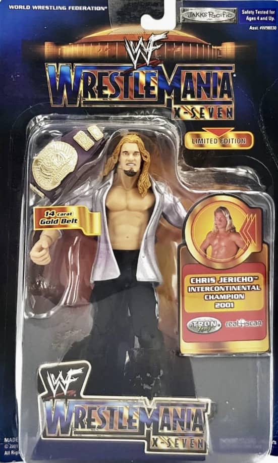 The WrestleMania X-Seven Series was introduced in 2001, and featured six wrestling champions from the past year. Included were Chris Jericho, Chyna, Eddie Guerrero, Edge, Kane and Stone Cold Steve Austin. This series saw brand new and detailed sculpts of each wrestler.