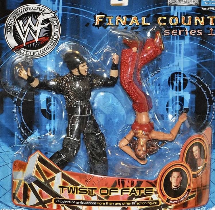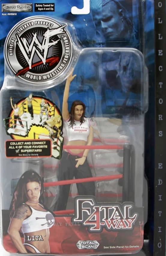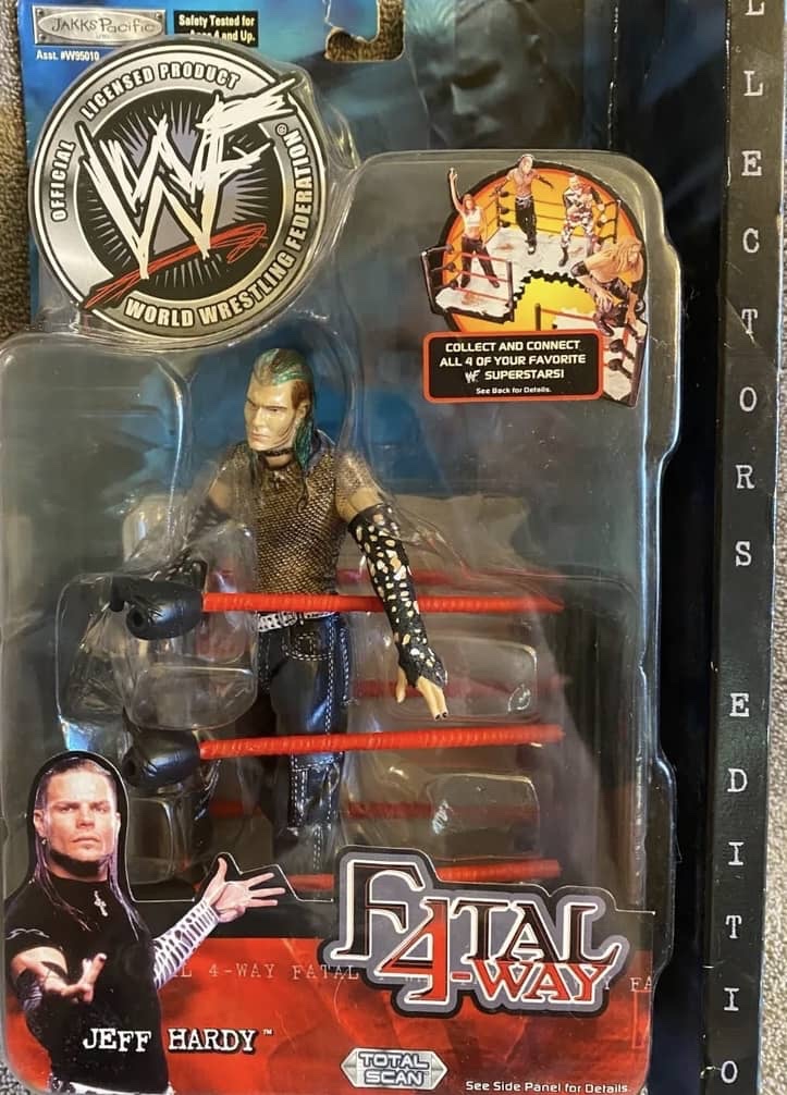The Fatal Four Way series of figures launched in 2001 with four different figures of Bubba Ray Dudley, Edge, Jeff Hardy and Lita.