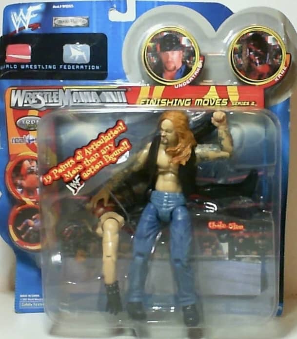 The Finishing Moves Series continued in 2001 with three more waves of the most popular wrestlers of the day in action poses of their signature moves. The figures were well articulated and able to get to other poses, but these are really nice looking figures by Jakks Pacific and best left in the action poses they come in.