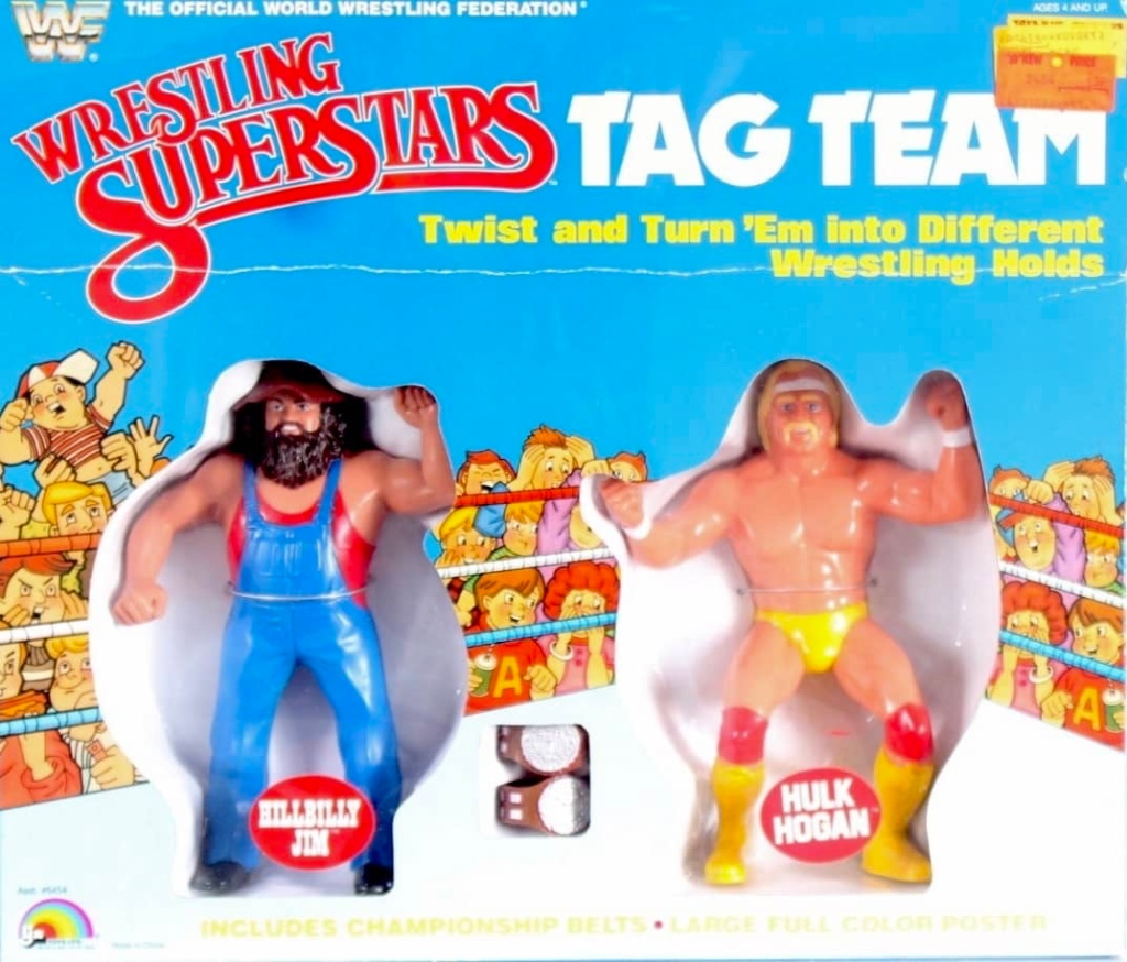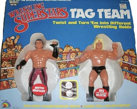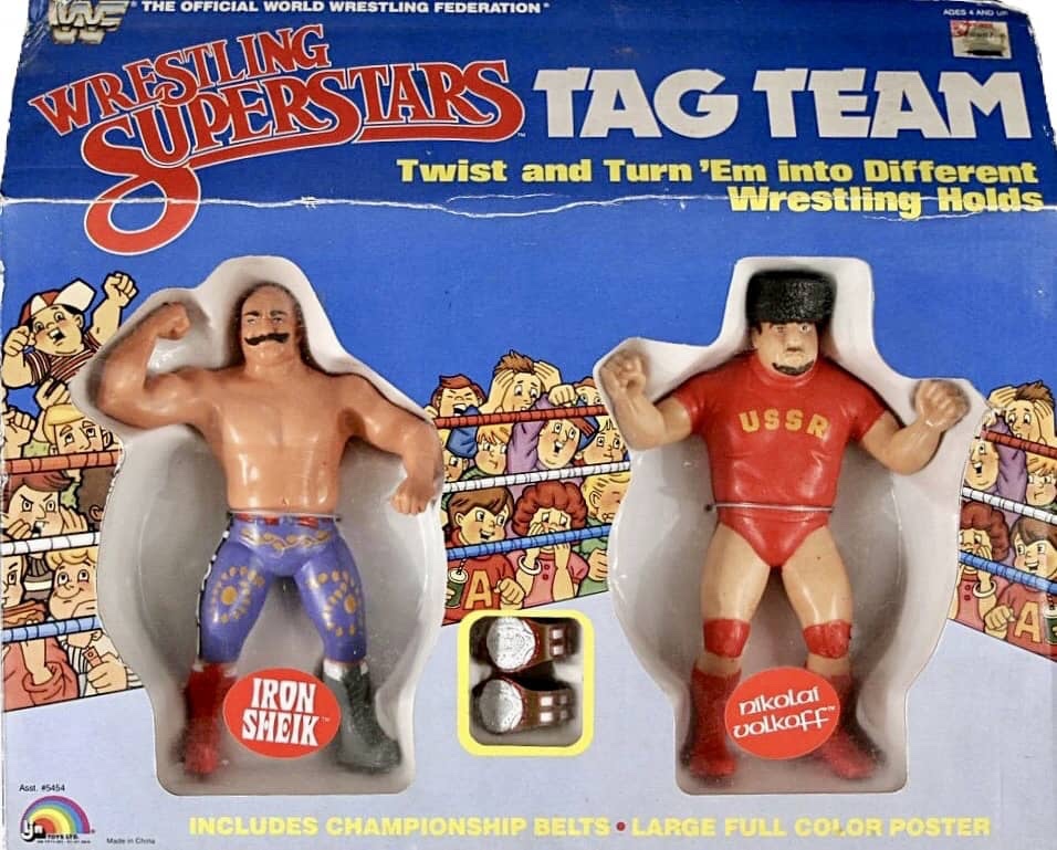 LJN released a small series of two-pack figures called “Tag Teams” in 1986. This set depicted popular tag teams of the WWF at the time. These sets can be very pricey on the secondary market nowadays, due to collectors wanting boxed versions of their favorite Tag Team duos. It should be noted that each figure was released individually as well and were identical to the Tag Team versions.