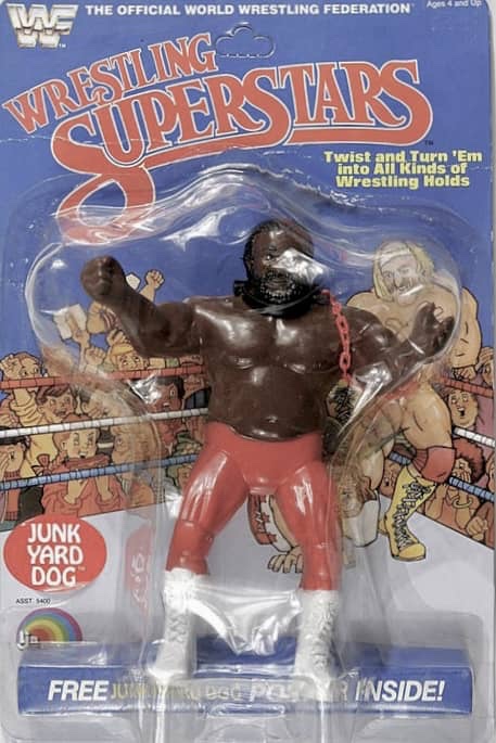 The premier wave of WWF figures from LJN featured Nine figures in total, with some huge names and legendary characters, such as Hulk Hogan, Andre the giant, and Rowdy Roddy Piper. It should be noted that estimated values are only for the basic figures and not the harder to find variants, such as Junkyard Dog with his different colored chains.