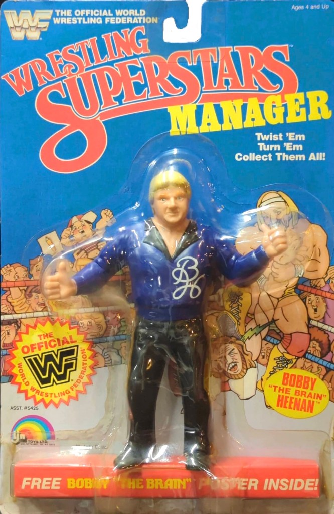 There were a total of 64 unique figures to the line, with 6 other released figures that were repainted variations of a previous figure. Each of the figures came with a bio card on the back of the packaging and a rolled up poster of the character stored under the packaged figure’s feet. The first wave was released in 1984, and contained nine figures. Each wave moving forward got bigger with more figures and different variations of certain characters. Many waves even contained some of the iconic and popular Managers that accompanied the wrestlers. The final wave of figures was released in 1989, but were actually made by Grand Toy in Canada and not LJN. The packaging switched to a new black card and were a mix of a few new figures and several repackaged wrestlers from earlier waves. These black cards are tough to find, and can bring high dollars on the secondary market. One playset was released for the line, and appropriately, it was a wrestling ring for all these fantastic action figures. An accessory to the ring was sold that converted it into a cage match setting. A small series of popular Tag Teams were also released in 1985 and 1986.