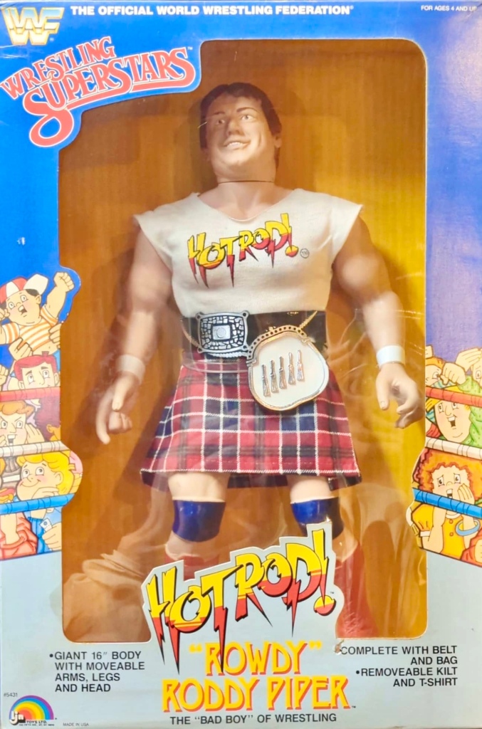 LJN only released two figures in their 16″ format, and they were the two most popular wrestlers of the time, Hulk Hogan and Rowdy Roddy Piper.