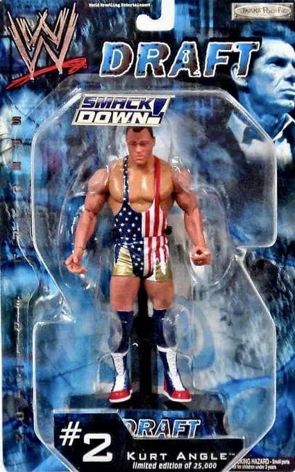 The WWE Draft Series was a brand new line that included four separate waves of WWE Superstars with high resolution sculpting. Each figure was limited to a certain production run, which differed for each character. Included were such stars as: Chris Jericho, Triple H, Kurt Angle, Rikishi, Hollywood Hulk Hogan, Undertaker, The Rock and so many more.