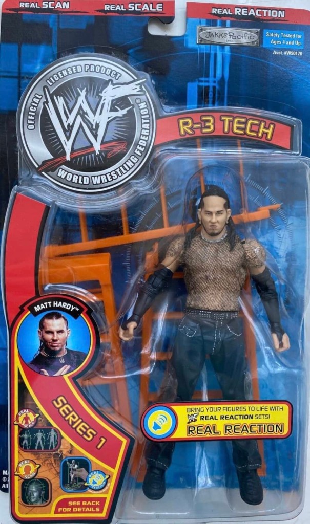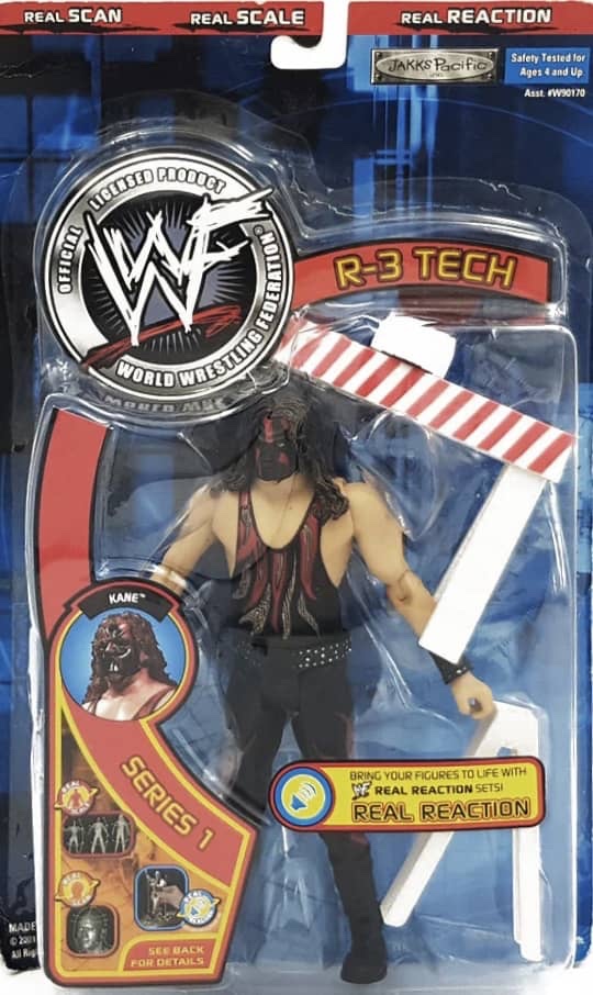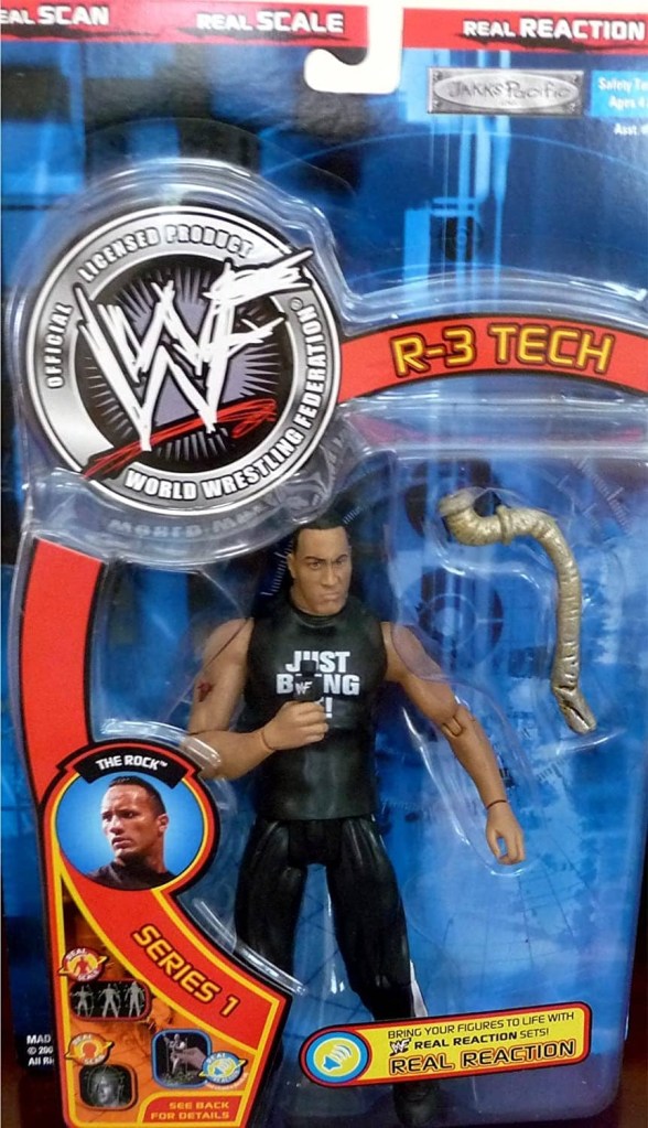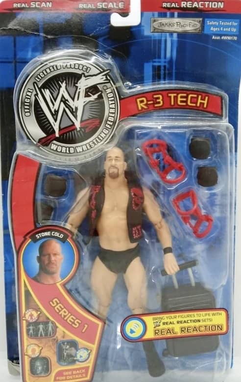 The seventh wave of wrestling action figures from Jakks Pacific in 2002 was a big transition year for the line. Their successful TitanTron Live series was winding down and being replaced by a new series called R-3 Tech. Jakks returned many sets and series from the previous year, but introduced a LOT of new series as well. Perhaps the biggest transition for the line was the announcement of the WWF/WCW merger (which also included the ECW) and morphing into a new WWE. This merger was announced the year before, but 2002 saw the first new products with the new WWE logo and tag.