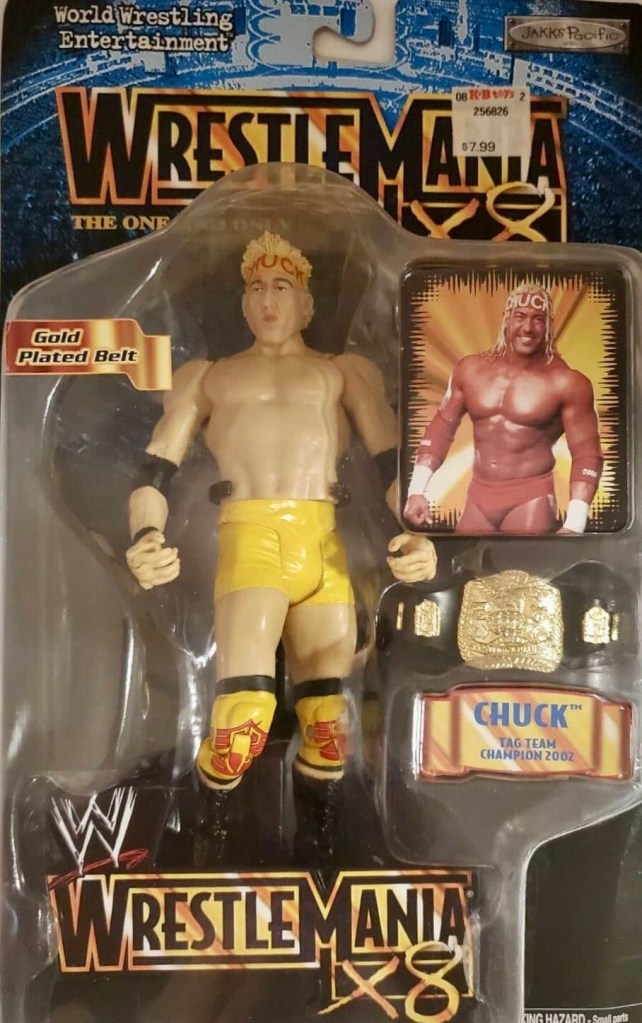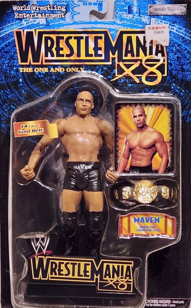 The WrestleMania X8 series was new to 2002 and featured new sculpts of six of the biggest names in wrestling, such as Booker T, Chris Jericho, Edge, Jeff Hardy, RVD and Triple H. Each figure featured a gold plated belt for the figures.